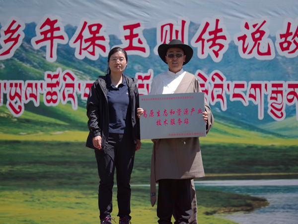 向白玉鄉(xiāng)人民政府交接“高原生態(tài)和資源產(chǎn)業(yè)技術服務站”牌匾