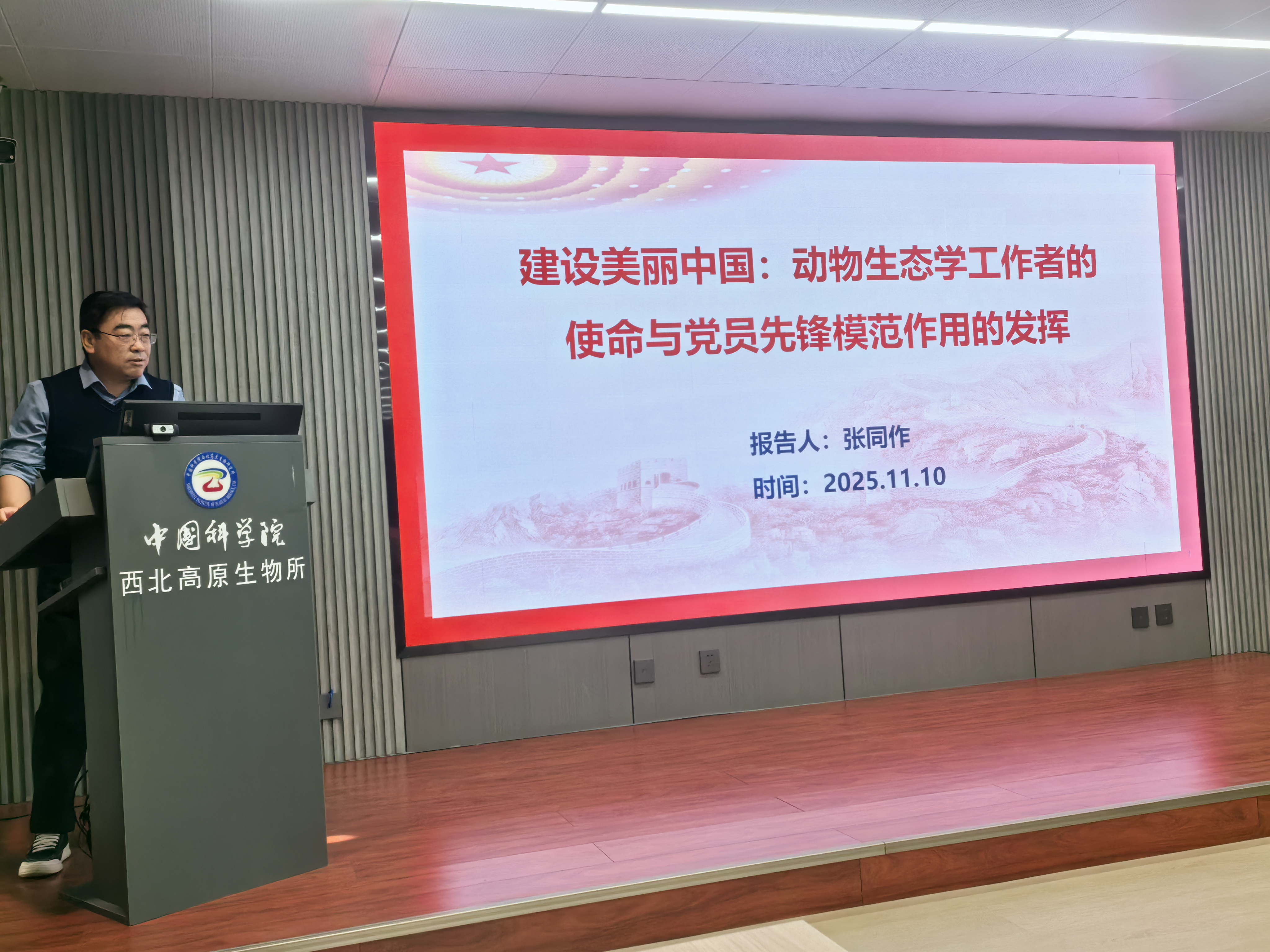 黨委委員張同作以“建設(shè)美麗中國(guó):動(dòng)物生態(tài)學(xué)工作者的使命與黨員先鋒模范作用的發(fā)揮”為題,從時(shí)代背景、專業(yè)使命、先鋒引領(lǐng)、融合實(shí)踐等多個(gè)維度,結(jié)合對(duì)全會(huì)精神的深刻理解與自身長(zhǎng)期扎根西部地區(qū)的科研工作實(shí)際,進(jìn)行了生動(dòng)而深刻的分享。上述3個(gè)黨課引發(fā)了全體黨員的強(qiáng)烈共鳴和深入思考。