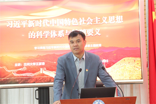 根據(jù)蘭州分院分黨組關(guān)于開展好學(xué)習(xí)貫徹習(xí)近平新時代中國特色社會主義思想主題教育的系列工作要求,會議第二階段進(jìn)行了主題教育專題團(tuán)課報告會,邀請?zhí)m州大學(xué)馬克思主義學(xué)院王彥濤副教授作《習(xí)近平新時代中國特色社會主義思想的科學(xué)體系與精髓要義》專題報告。報告從“習(xí)近平新時代中國特色社會主義思想是如何創(chuàng)立的”“習(xí)近平新時代中國特色社會主義思想回答了什么重大時代課題”“習(xí)近平新時代中國特色社會主義思想主要包含哪些內(nèi)容”“如何理解習(xí)近平新時代中國特色社會主義思想的歷史地位”“如何學(xué)好用好習(xí)近平新時代中國特色社會主義思想”5個方面系統(tǒng)講解了習(xí)近平新時代中國特色社會主義思想的思想內(nèi)涵與重大意義,報告內(nèi)容詳實(shí)、生動全面,為與會團(tuán)員青年進(jìn)一步接受主題教育起到了良好的指導(dǎo)作用。