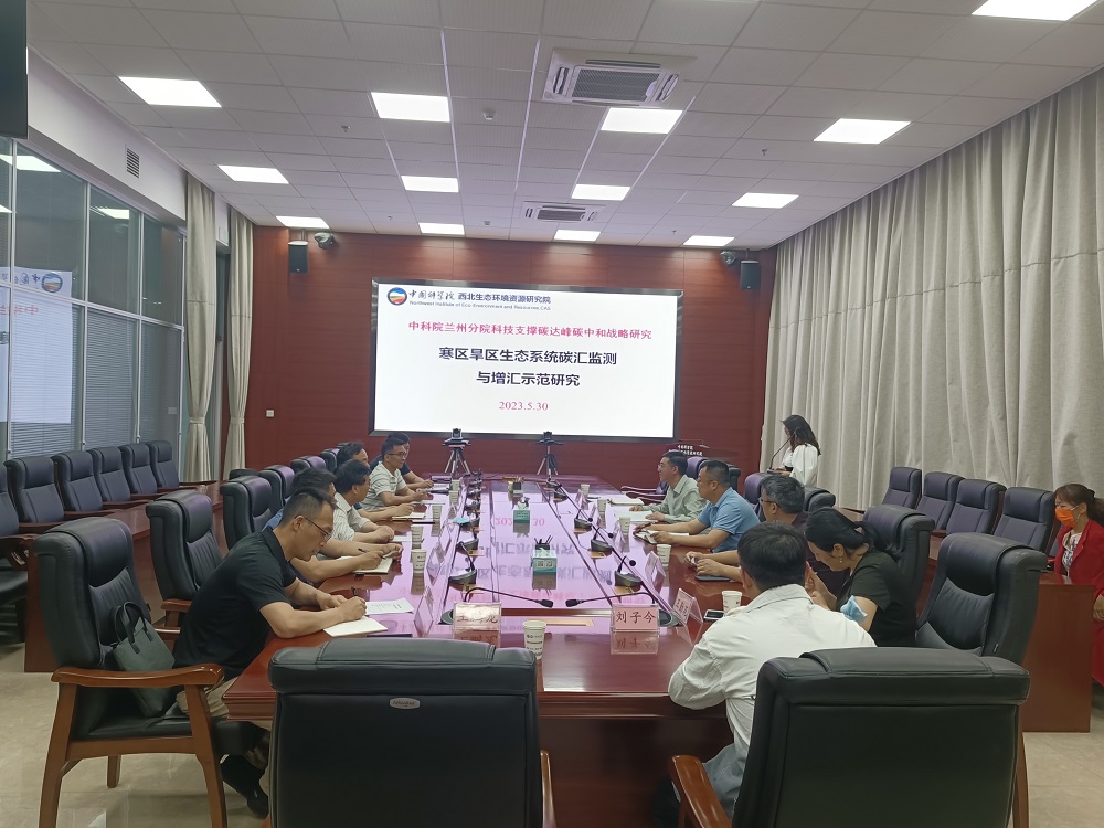 為全面貫徹落實(shí)黨中央《關(guān)于在全黨大興調(diào)查研究的工作方案》及院黨組科技支撐“雙碳”目標(biāo)重大決策部署,摸清蘭州分院系統(tǒng)單位支撐國(guó)家及區(qū)域?qū)崿F(xiàn)“雙碳”目標(biāo)技術(shù)儲(chǔ)備基礎(chǔ),根據(jù)中共中國(guó)科學(xué)院蘭州分院分黨組《關(guān)于深入開展調(diào)查研究的實(shí)施方案》工作要求,5月30日上午,蘭州分院副院長(zhǎng)趙培慶到中科院西北生態(tài)環(huán)境資源研究院開展專題調(diào)研活動(dòng)。西北生態(tài)環(huán)境資源研究院科研處負(fù)責(zé)人,凍土與寒區(qū)工程研究室、高原大氣物理研究室、沙漠與沙漠化研究室、文獻(xiàn)情報(bào)中心“雙碳”領(lǐng)域相關(guān)專家學(xué)者參加調(diào)研座談會(huì),蘭州分院科技合作處陪同調(diào)研。