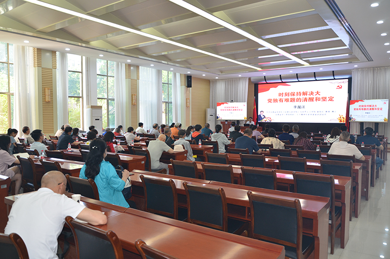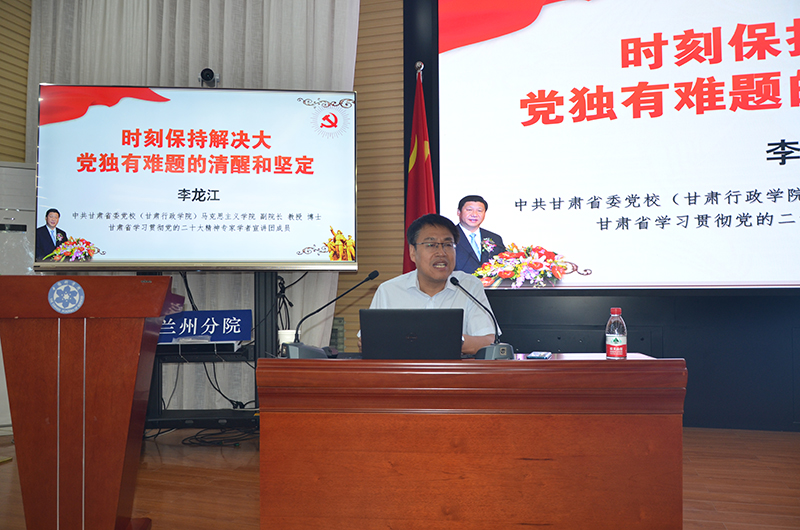 會議邀請了甘肅省委黨校馬克思主義學(xué)院副院長李龍江教授作《時刻保持解決大黨獨有難題的清醒和堅定》專題輔導(dǎo)報告。報告圍繞“把握大黨獨有難題的原因和表現(xiàn)”“明確提出大黨獨有難題的重大意義”“總結(jié)解決大黨獨有難題的歷史經(jīng)驗”“以自我革命精神破解大黨獨有難題”四個方面進行了全面細致的講解,從新時代新征程黨和國家事業(yè)發(fā)展全局的高度,分析大黨獨有難題的形成原因、主要表現(xiàn)和破解之道。報告高屋建瓴、內(nèi)涵豐富,思路清晰、分析透徹,既有深邃系統(tǒng)的理論闡釋,又有大量鮮活的實踐案例,對認真貫徹落實習(xí)近平新時代中國特色社會主義思想具有很強的指導(dǎo)意義。