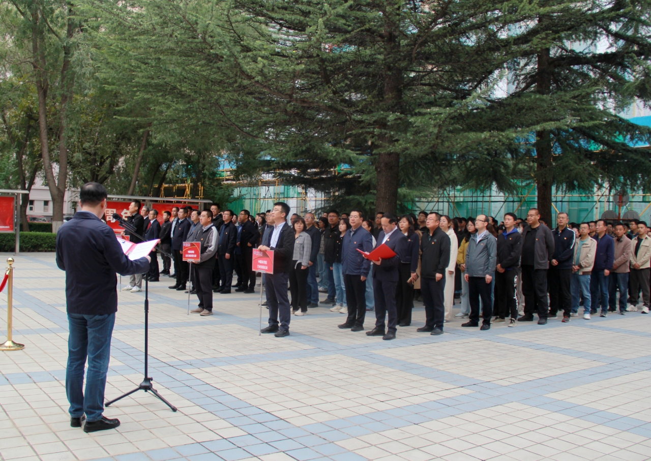 上午9時,升國旗儀式開始。伴隨著莊嚴(yán)雄壯的《義勇軍進(jìn)行曲》,中國科學(xué)院西北生態(tài)環(huán)境資源研究院黨委書記、副院長張長春代表分院系統(tǒng)單位升國旗,全體人員肅立致敬,齊唱國歌,注視著鮮艷的五星紅旗冉冉升起,向偉大祖國致以最崇高的敬意,共祝祖國繁榮昌盛、國泰民安。