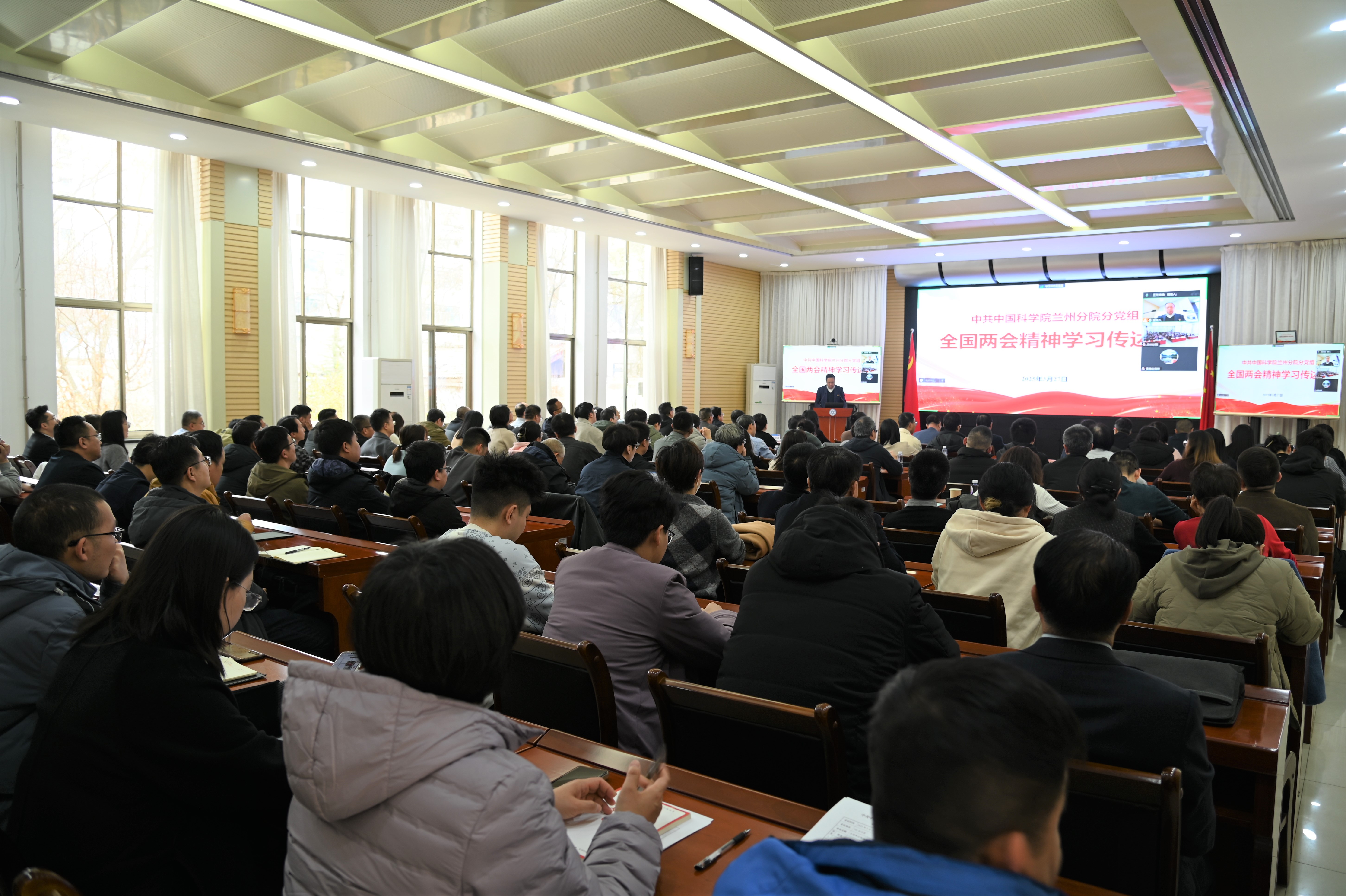 蘭州分院系統(tǒng)各單位領(lǐng)導(dǎo)班子成員、黨委委員、紀委委員、中層干部、黨支部書記、科研管理骨干代表、分院機關(guān)全體職工參加會議。
