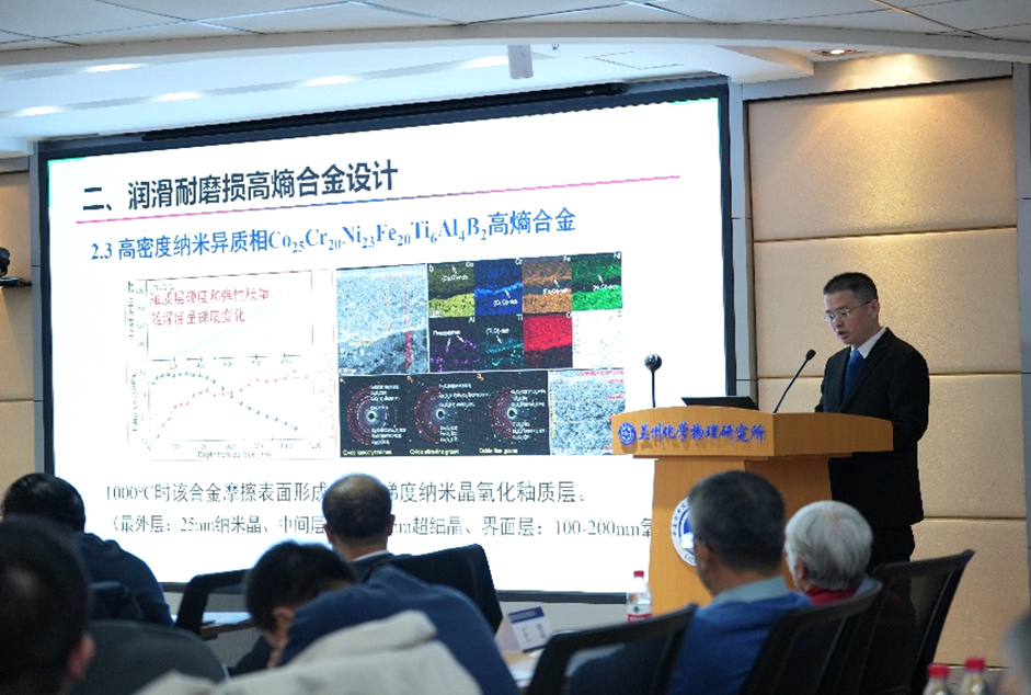 蘭州化物所所長(zhǎng)、潤(rùn)滑材料重點(diǎn)實(shí)驗(yàn)室主任周峰研究員作了2024年度實(shí)驗(yàn)室工作報(bào)告。詳細(xì)介紹了2024年實(shí)驗(yàn)室重組和黨建創(chuàng)新文化建設(shè)情況,匯報(bào)了實(shí)驗(yàn)室在科研成果、平臺(tái)建設(shè)、人才引進(jìn)與培養(yǎng)、產(chǎn)業(yè)化等方面取得的成績(jī)和存在的問題與思考,提出了2025年工作重點(diǎn)及目標(biāo)。隨后,程軍研究員和張耀明研究員分別作了題為“潤(rùn)滑耐磨損高熵合金的設(shè)計(jì)研究”和“形狀記憶聚合物創(chuàng)制及其智能響應(yīng)應(yīng)用”的學(xué)術(shù)報(bào)告。