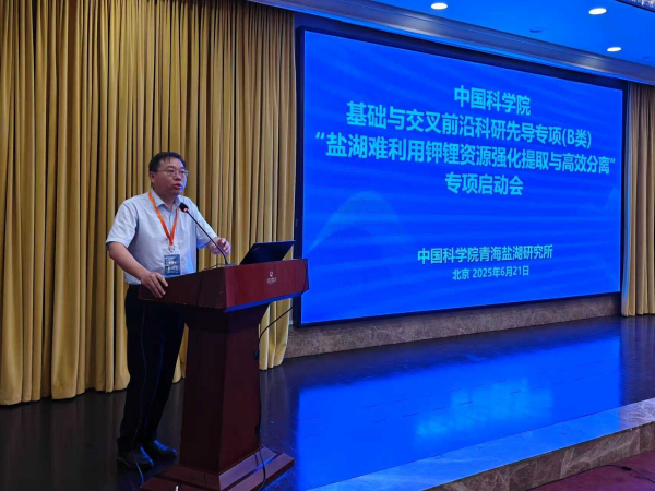 6月21日,中國科學(xué)院基礎(chǔ)與交叉前沿科研先導(dǎo)專項(B類)“鹽湖難利用鉀鋰資源強化提取與高效分離”(以下簡稱“專項”)啟動會在北京順利召開。包括兩院院士在內(nèi)的共10位專家受邀參會指導(dǎo),中國科學(xué)院可持續(xù)發(fā)展局、承擔(dān)單位項目組成員代表等40余人參加會議。啟動會由中國科學(xué)院青海鹽湖研究所副所長(主持工作)鄭詩禮主持。