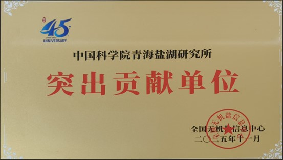 青海鹽湖所榮獲中國化工學(xué)會無機(jī)酸堿鹽專業(yè)委員會“突出貢獻(xiàn)單位”稱號
