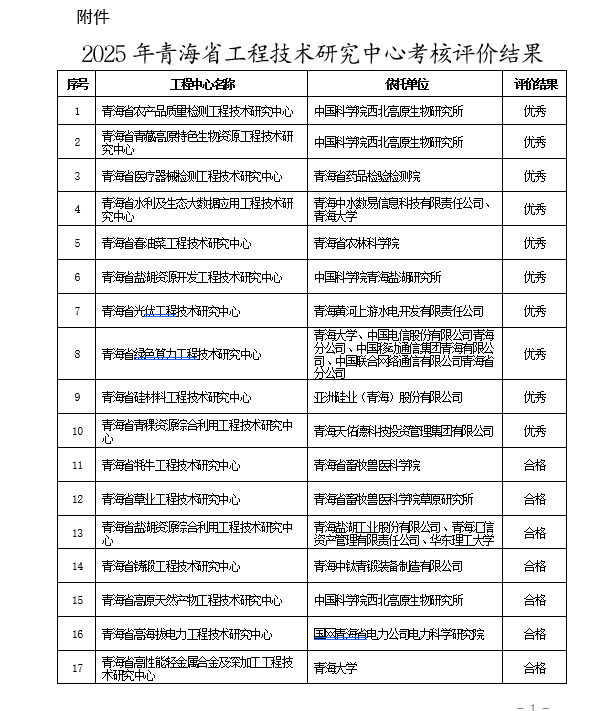 近日,青海省科技廳公布了2025年度青海省工程技術(shù)研究中心年度考核評(píng)價(jià)結(jié)果。全省參加本次考核評(píng)價(jià)工作的工程技術(shù)研究中心共73家。經(jīng)集中匯報(bào)專家定性評(píng)價(jià)程序,10家工程技術(shù)研究中心被評(píng)估為優(yōu)秀,57家被評(píng)估為合格。中國(guó)科學(xué)院西北高原生物研究所公共技術(shù)中心生態(tài)環(huán)境資源分析檢測(cè)平臺(tái)“青海省農(nóng)產(chǎn)品質(zhì)量檢測(cè)工程技術(shù)研究中心”和藏藥標(biāo)準(zhǔn)化與新藥研發(fā)平臺(tái)"青藏高原特色生物資源工程技術(shù)研究中心"在本次考核評(píng)價(jià)中喜獲佳績(jī),分別獲得第1名和第2名的優(yōu)秀成績(jī)。