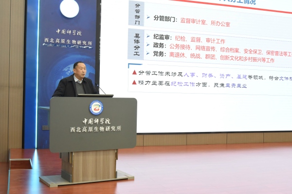 陳世龍所長代表所領(lǐng)導(dǎo)班子作了題為“扎根青藏高原 聚焦高原生物 保障生態(tài)安全”的2025年度工作總結(jié)和述職報告。報告詳細(xì)闡述了“十四五”完成情況,就深入學(xué)習(xí)貫徹黨的二十屆四中全會精神,貫徹落實2025年度院工作會議精神,聚焦院黨委重大決策部署,研究所重大科研項目進(jìn)展、高水平科研成果產(chǎn)出等內(nèi)容進(jìn)行匯報,并對2026年重點工作進(jìn)行部署。