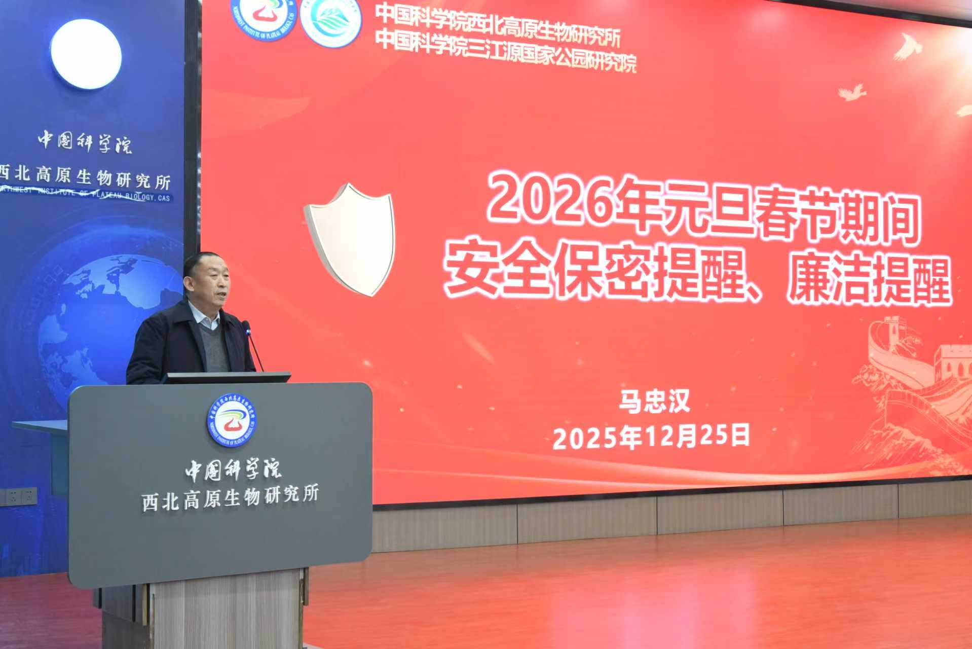 12月25日,中國科學(xué)院西北高原生物研究所召開2025年度工作總結(jié)大會暨領(lǐng)導(dǎo)班子考核會議。中國科學(xué)院蘭州分院副院長、分黨組成員趙培慶,人事人才處相關(guān)人員,西北高原所所長、黨委書記陳世龍,副所長魏立新、楊其恩,紀(jì)委書記馬忠漢以及全所在職職工、老專家老干部代表和研究生240余人參加了會議。會議由陳世龍主持。